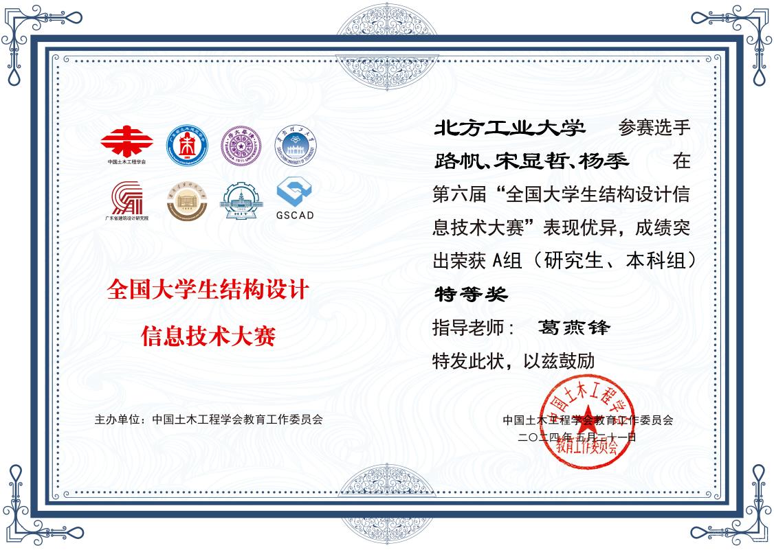 近日,由中国土木工程学会教育工作委员会和清华大学土木水利学院主办的第六届全国大学生结构设计信息技术大赛顺利落下帷幕。bat365土木学院参赛队伍荣获特等奖1项、一等奖3项、二等奖2项、三等奖1项。