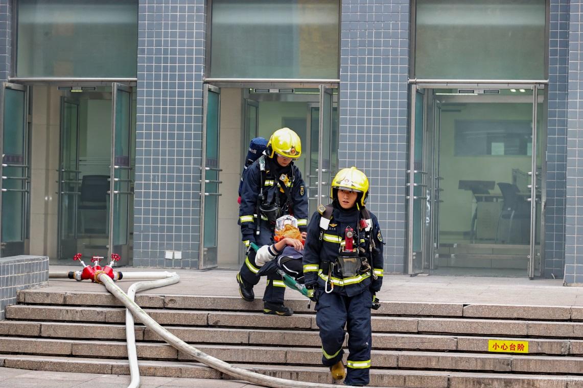 此次演习以学校图书馆突发火情、2000余名学生正在馆内学习为背景,按照学校发现火情后立即组织自救,同时拔打“119”救助、通知友邻首钢工学院和首钢医院支援的基本流程,重点演练了火灾接报警、初期火情处置、区域联动、疏散逃生、营救被困人员、救治转运伤员、火灾扑救等科目。演习过程中,全体参演人员各负其责、紧密协作、有序疏散,通过近似实战的演练场景,全面检验了相关单位快速反应、应急指挥能力,友邻单位协同作战、临机处置能力,师生员工有序疏散、安全逃生能力,消防救援快速到达、精准施救能力,进一步探索完善了区域消防协作模式。