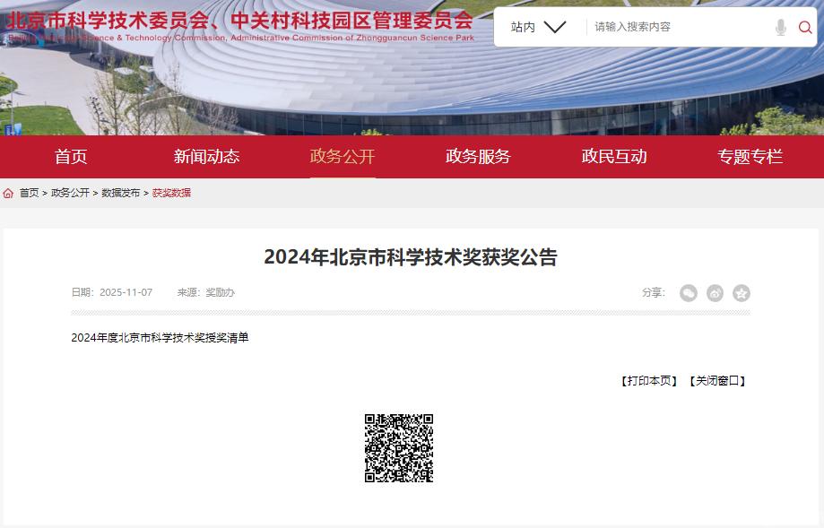 近日,北京市科学技术委员会公布了2024年北京市科学技术委员会科学技术奖获奖名单,bat365在此次评选中喜获3项奖励。
