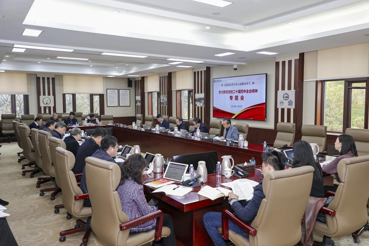 11月6日下午,学校党委理论学习中心组在敦品楼302进行集体学习,专题学习、集中研讨党的二十届四中全会精神,研究部署学校贯彻落实工作。校党委书记刘军主持,校级党委理论学习中心组全体成员参加,市委第十巡视组意识形态工作组成员列席指导。