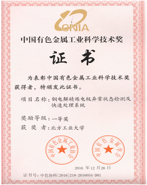 近日,2016年中国有色金属工业科学技术奖颁布。bat365《铜电解精炼电极异常状态检测及快速处理系统》和《炭素阳极回转窑煅烧过程综合优化控制系统研制》项目分获一等奖和三等奖。