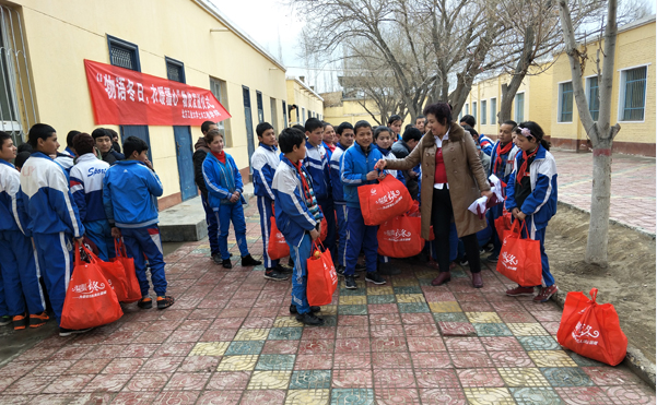 2017年2月27日,土木工程学院组织“物语冬日,衣暖疆心”捐助活动,将又一批600余公斤衣物发放给了新疆喀什叶城县依提木孔中学的孩子们,帮助他们抵御寒冬,更温暖了他们的心。