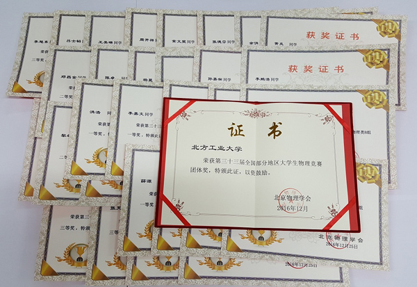 2016年第三十三届全国部分地区大学生物理竞赛于12月11日结束,近日竞赛成绩揭晓。bat365再次取得优异成绩,在同类院校中名列前茅,共有139名同学参赛,37人获奖,其中一等奖10名、二等奖10名、三等奖17名,其中一等奖获得人数再创历史新高,并获团体奖。