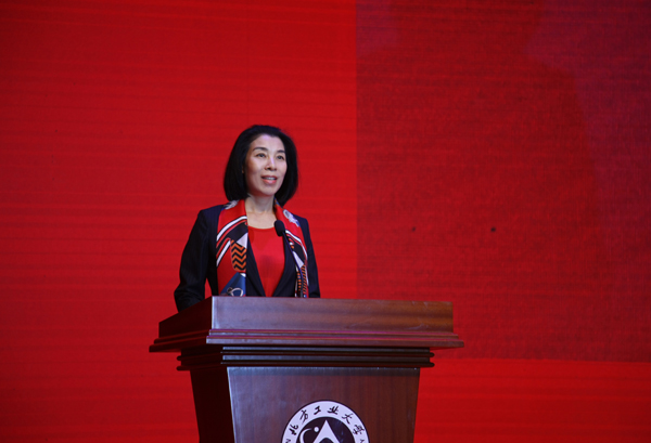 校友代表,第十二届全国人大代表、美的控股高级副总裁袁利群,代表8万多校友向母校70岁华诞献上祝福,她回顾了在北方工大的学习生活和自己毕业后成长拼搏的奋斗历程,指出无论身在何方,母校的关怀和激励永远是校友们指路的明灯、成长的动力。她表示,校友们为学校办学实力的提升和校园面貌的巨大变化深感自豪,将在“敦品励学、才德并懋”校训的激励下,创造出更加精彩的人生,为母校增光添彩,并祝愿母校越办越好。