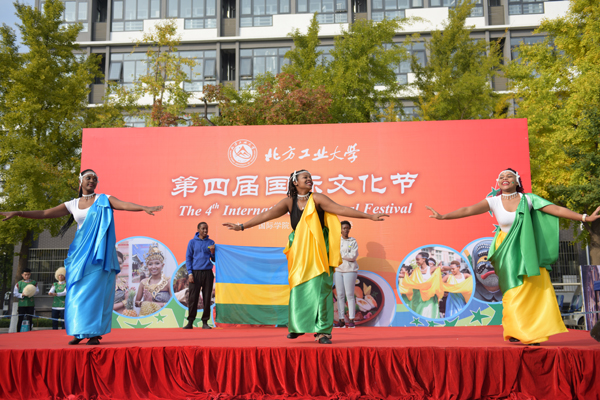 “国际文化节”分为节目展演与文化展示两部分。节目展演在合唱曲目《我和你》中拉开帷幕,来自土库曼斯坦、赞比亚、蒙古、卢旺达等国家的同学带来了一个又一个精彩的歌舞表演,赢得了现场同学的阵阵热烈掌声。