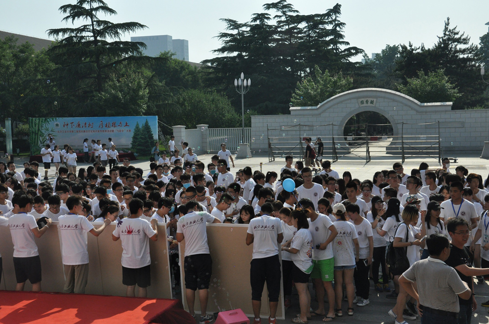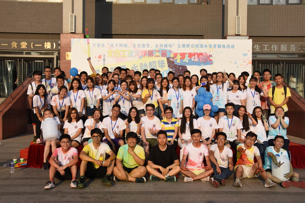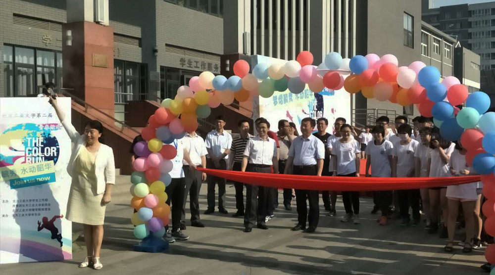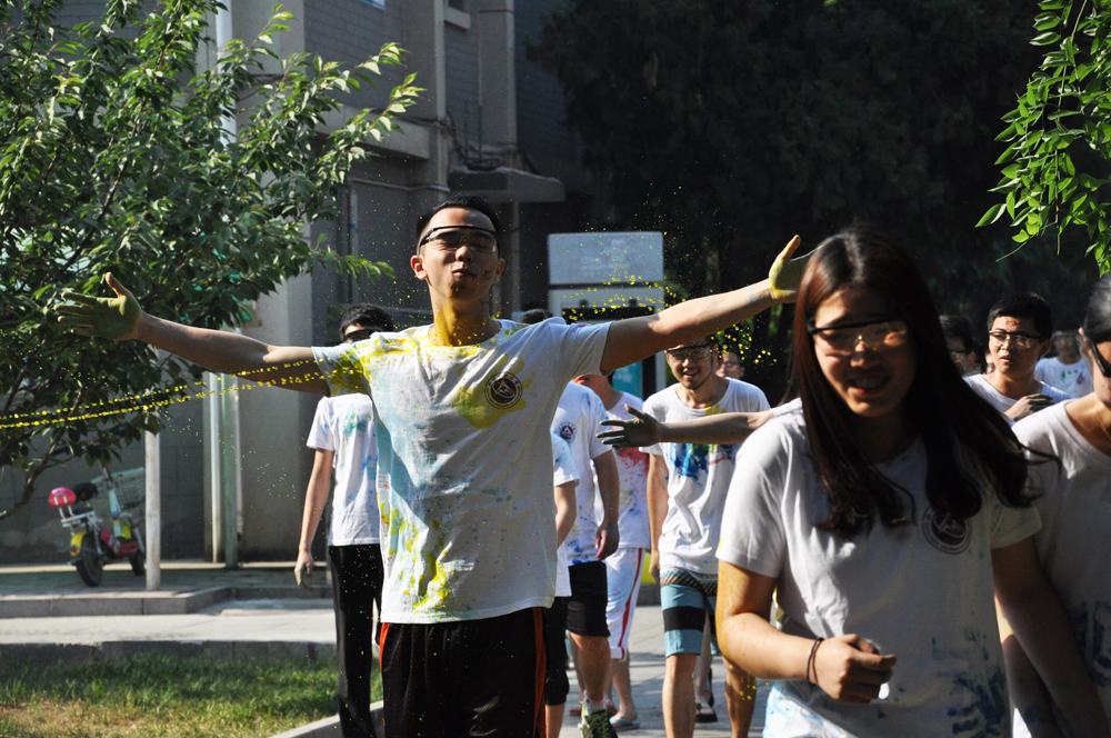 此次彩跑活动共设置彩色喷洒点4个,红、绿、蓝、黄四种颜色的颜料喷洒到跑步同学的衣服上,增加了运动的活力与趣味性。