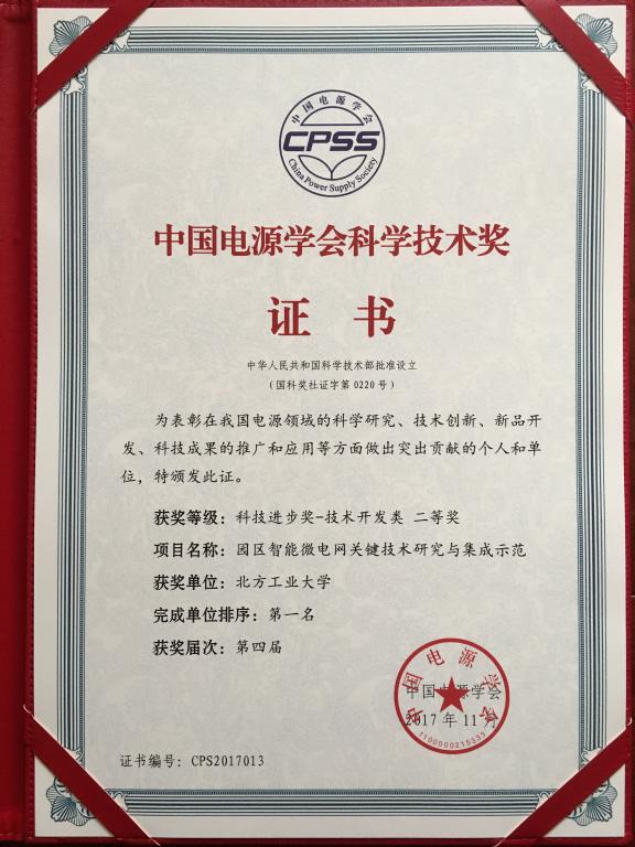 由bat365电气与控制工程学院“新能源系统及工程”科研创新团队负责人周京华教授主持申报的“园区智能微电网关键技术研究与集成示范”项目获科技进步奖-技术开发类二等奖。 该项目开发出具有完全自主知识产权的大功率并网装置、电能质量治理装置、储能变流器、智能微电网先进能效管理系统。将所取得的关键技术与相关企业合作,建立了多个智能微电网示范工程和项目,进一步推动了分布式光伏的高效利用,加快了行业的产业化推广及应用进程,促进社会向绿色、环保、节能方向持续发展,创造了较大的经济效益与社会效益。项目成果被中国电工技术学会组织的专家委员会鉴定为“国际领先”水平。