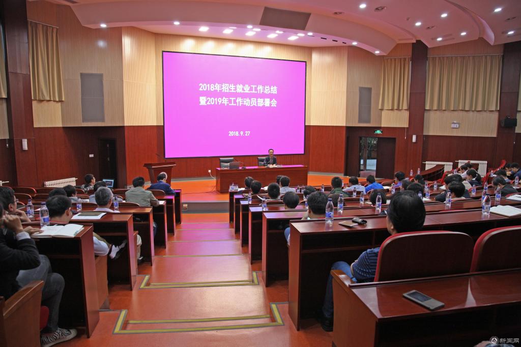 9月27日下午,学校2018年招生就业工作总结暨2019年工作动员部署会在文化会堂召开。党委书记郑文堂、副校长王建稳、党委副书记田红芳出席会议,各职能部门主要负责人、各学院领导班子成员、系主任、责任教授、辅导员100余人参加了会议。会议由副校长王建稳主持。