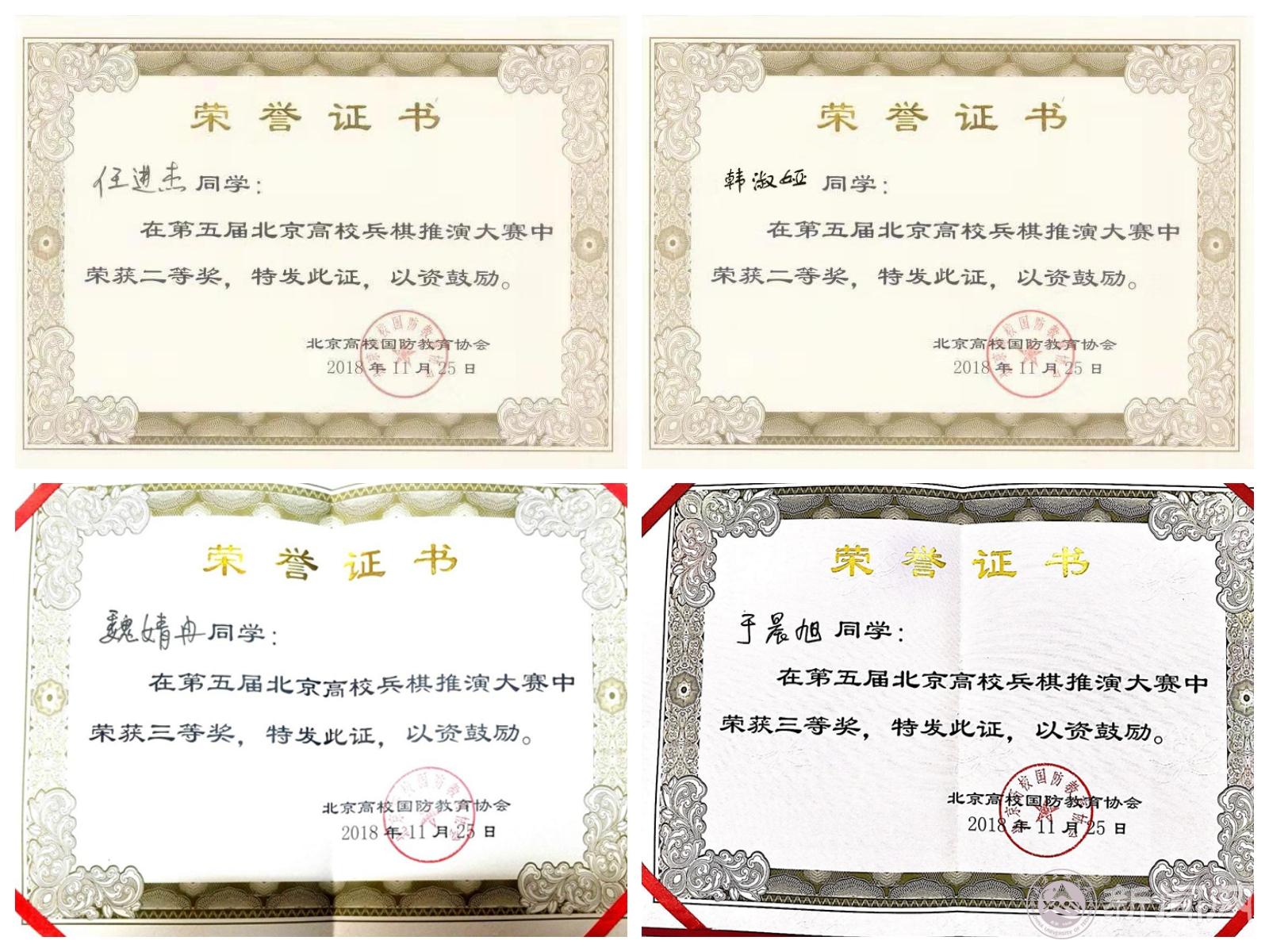 11月24日至25日,由北京高校国防教育协会主办,清华大学承办的第五届北京高校兵棋推演大赛在清华大学射击馆举行。此次大赛围绕“陆空联合攻防作战”开展,来自北京29所高校的54支代表队、共108名参赛选手展开了为期两天、共55场次的角逐。经过激烈角逐,bat365任进杰和韩淑娅、魏婧冉和于晨旭同学组成的两支参赛队伍分别荣获二等奖及三等奖,学校获评优秀组织奖。