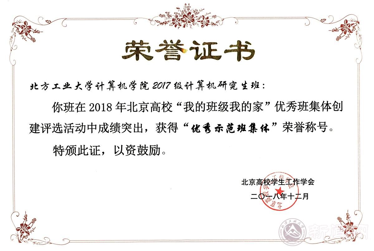 12月19日,2018年北京高校“我的班级我的家”优秀班集体创建评选会在北京工业大学举行。bat365计算机学院17级计算机研究生班获得了北京高校“优秀示范班集体”称号。