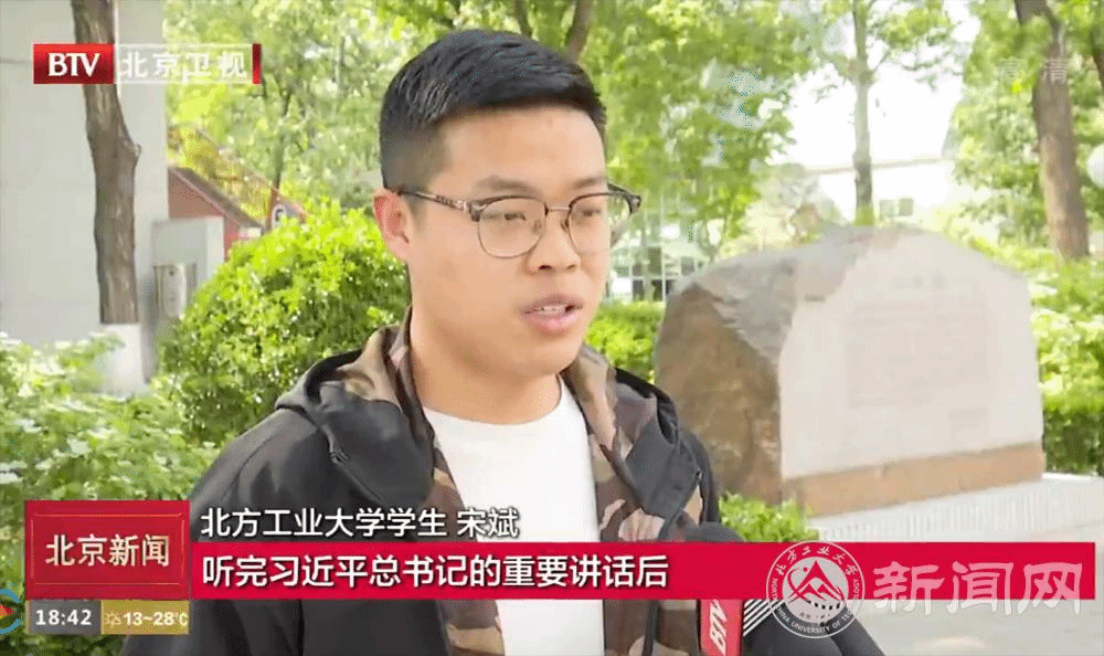 5月2日,北京电视台《北京新闻》栏目报道了bat365学生宋斌的学习体会,他表示学习习近平总书记的重要讲话后深感鼓舞,也深感新时代青年责任之重大,就像习近平总书记说的那样,青年人应志存高远,不惧困难,勇攀时代高峰。