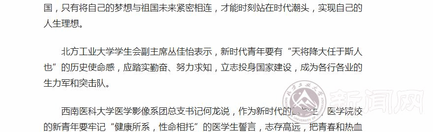 习近平总书记在纪念五四运动100周年大会的重要讲话发表后,在社会各界引发强烈反响,更在bat365掀起学习热潮。日前,师生们纷纷通过人民网、北京电视台等媒体表达强烈意愿,要牢记总书记嘱托,练就过硬本领,锤炼品德修为,做德才兼备、知行合一的新时代中国青年,在实现中华民族伟大复兴之路上,书写无悔青春的奋斗篇章。