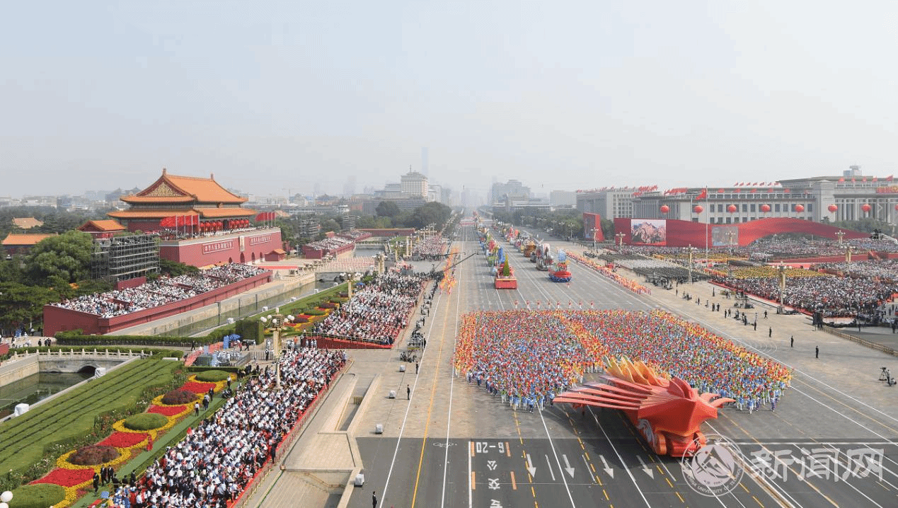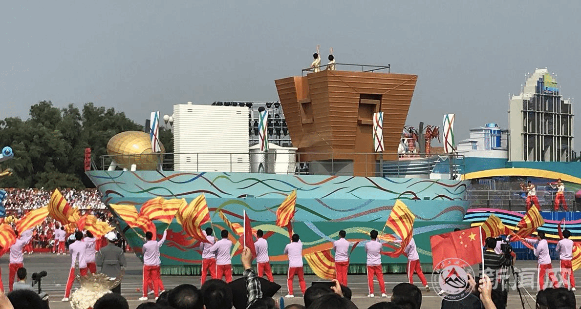 群众游行队伍的第31号方阵,主题为“中华儿女”,由2972名各界群众组成,其中930名北方工大师生组成了方阵骨架。方阵在“鲲鹏展翅”主题彩车的引领下,兴高采烈、欢呼雀跃走过天安门广场,后面跟着来自各省区市的34辆地方彩车,展示了全国各地70年来的建设发展成就。