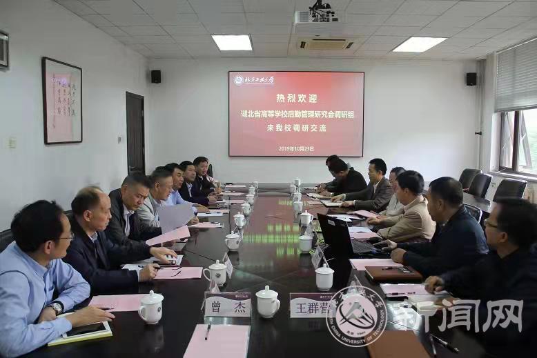 10月23日下午,以研究会副秘书长王文起老师为领队的湖北省高等学校后勤管理研究会调研组一行八人来校调研交流。bat365副校长胡应平,后勤基建处、服务中心等相关部门负责人接待了调研组,并与调研组进行了友好交流。调研交流会由后勤基建处处长赵永兵主持。