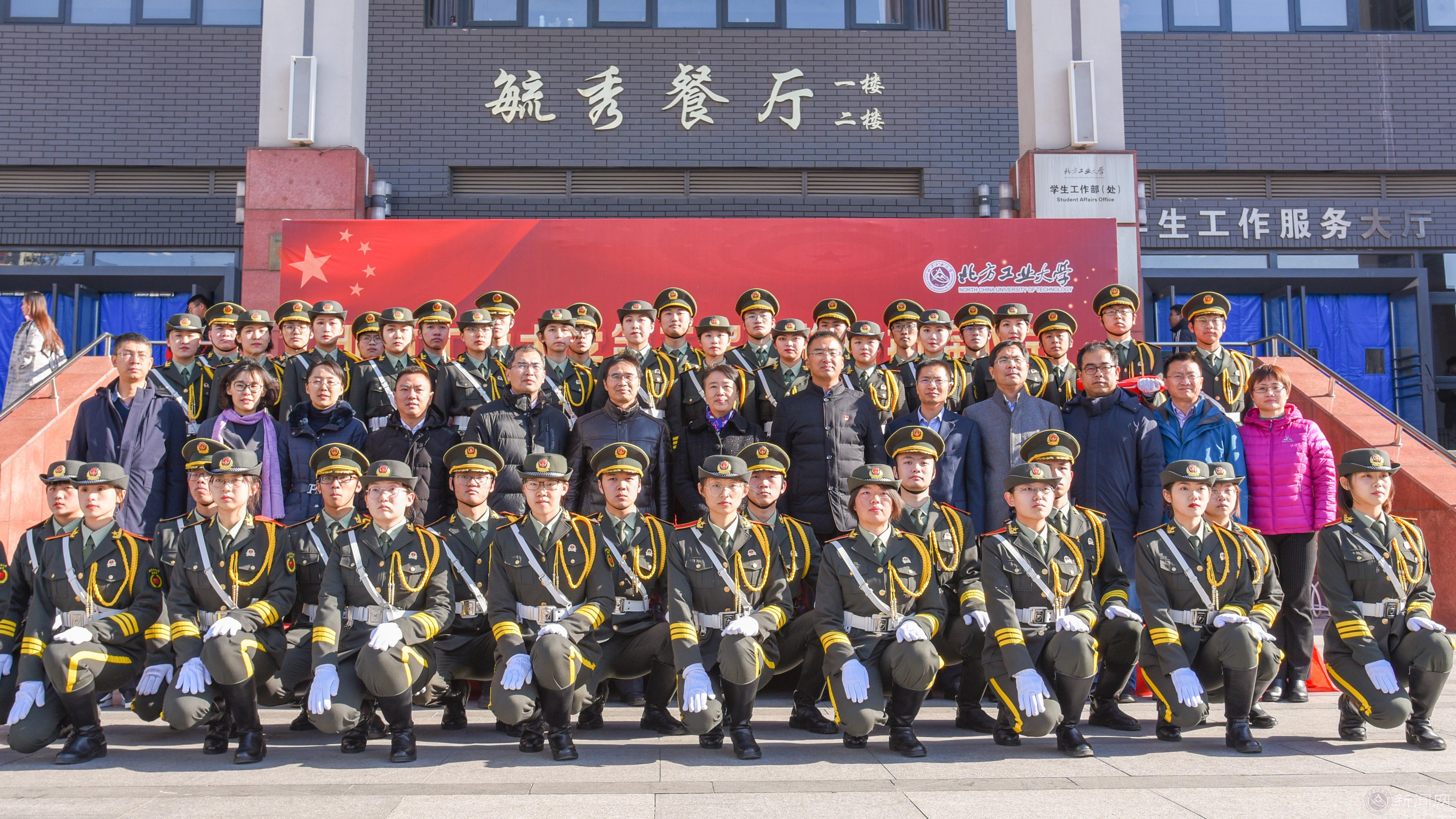 11月27日中午,学校第三届国旗班换届交接仪式在毓秀广场隆重举行。校党委副书记田红芳出席活动,武装部、学工部、校团委等部门负责人及各学院党委副书记、团委书记参加活动,200余名师生代表见证了国旗交接的庄严时刻。