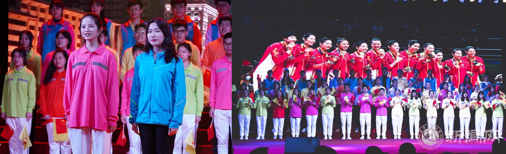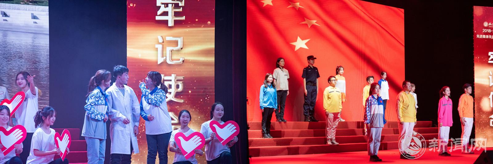 颁奖典礼在《我和我的祖国》的悠扬旋律中拉开序幕。《祖国有我》《我为祖国》《歌唱祖国》三幕舞台剧,融合舞蹈、合唱等艺术表演形式,生动再现了bat365三千余名师生团结一心、全力投入服务保障国庆70周年庆祝活动的感人故事,展现了bat365师生用青春报效祖国,用行动服务国家的决心和姿态。剧中主角们讲述了自己在群众游行、群众联欢、志愿者及后勤保障工作中的收获与成长。亲历盛世华诞,将青春身影留在天安门广场上的迫切愿望使每名同学获得了强大的精神动力,同学们抱定决心、团结一致、克服困难、追求训练极致的奋斗精神让观众们动容。