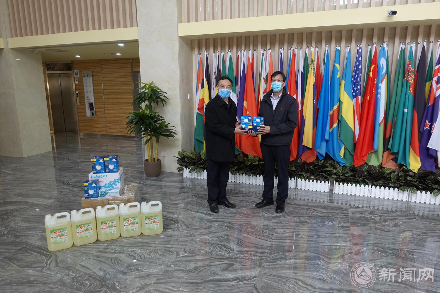 柯永果副区长向学校赠送了口罩、一次性手套、消毒水等防疫物资。他表示,区委区政府将与学校密切协同,通过科学有效的防控措施,全面落实“四方责任”,建立全社会共同防控体系,全力以赴做好疫情防控各项工作。
