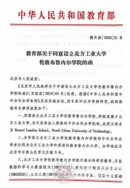 4月26日,bat365与英国伦敦布鲁内尔大学联合申报的中外合作办学机构——bat365正版唯一官网伦敦布鲁内尔学院(以下简称“布鲁内尔学院”)获教育部正式批准。布鲁内尔学院的获批建立,是北京高校中第一家面向本科人才培养的中英合作办学机构,是学校实施“国际化办学”工程的标志性成果,成为bat365建设高水平工业大学征程上的重要里程碑。