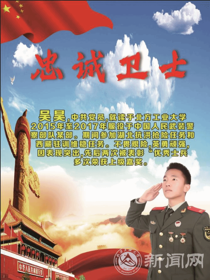 吴昊同学是从64所高校推荐的80名在校退役大学生士兵选拔而出的30名优秀代表之一。历经市校两级视频评选、资格审核、述优答辩、专家评审等环节脱颖而出。吴昊同学在服役期间参加过湖北抗洪抢险、西藏驻训维稳等任务,因不畏艰险,英雄顽强,先后两次被评为“优秀士兵”,多次荣获上级嘉奖。退役复学后,坚持将在军队里养成的好作风、好习惯带到日常学习中,学习刻苦认真,积极参加国庆70周年庆祝活动。先后获得校级一、二等学习奖学金,“国庆 70 周年游行活动”优秀教官、bat365正版唯一官网优秀队长等荣誉。