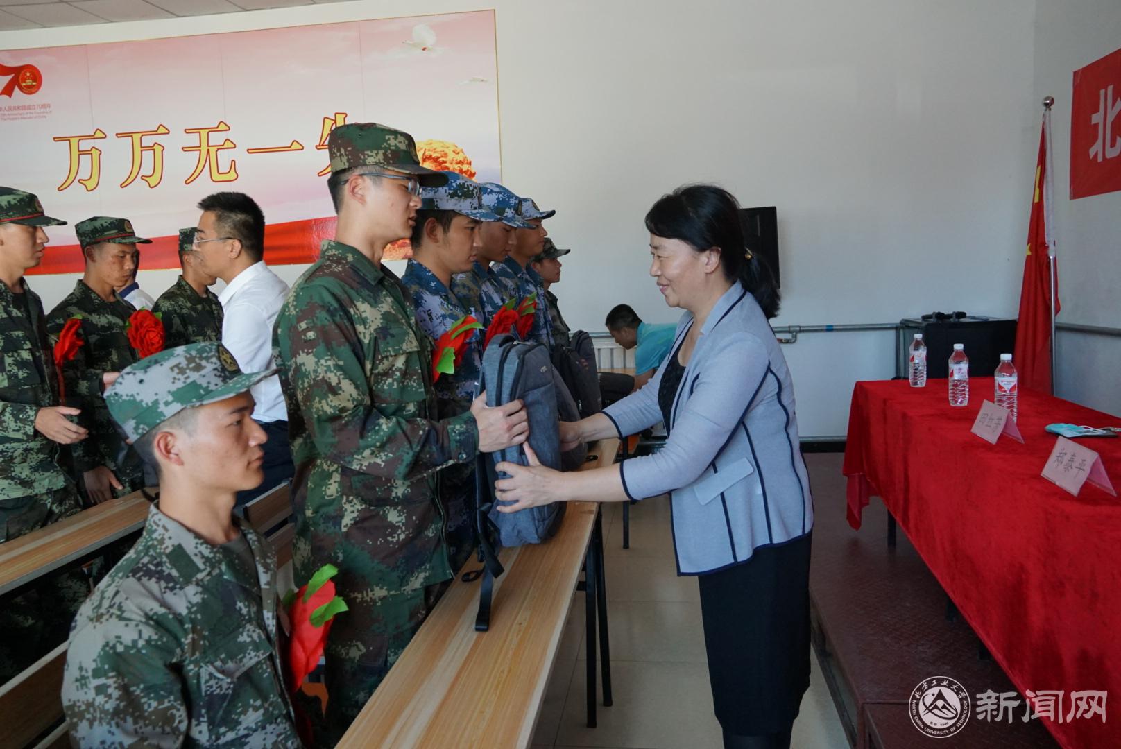 9月9日下午,受学校征兵工作领导小组委托,校党委副书记田红芳带领学校武装部及部分学院老师,赴昌平区某军训基地为bat365即将入伍的学生送行,并赠送纪念品。