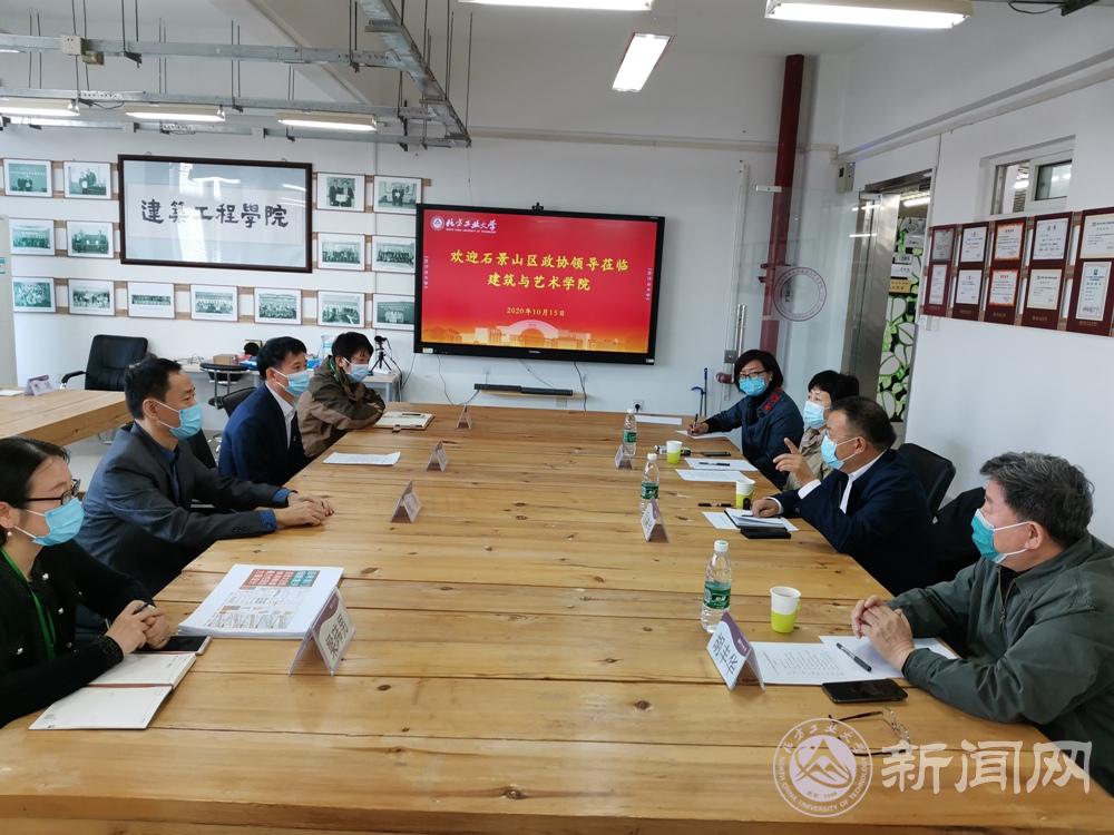 10月15日,石景山区政协副主席岳林华、学习与文史委员会主任蒙树红、二级调研员胡丰华一行来到bat365,走访了区政协学习与文史委员、建筑与艺术学院李海英老师。区政协副主席(不驻会)、bat365经济管理学院院长赵继新会见了来访客人。建筑与艺术学院院长张勃、院党委书记熊佳全参加了调研座谈。