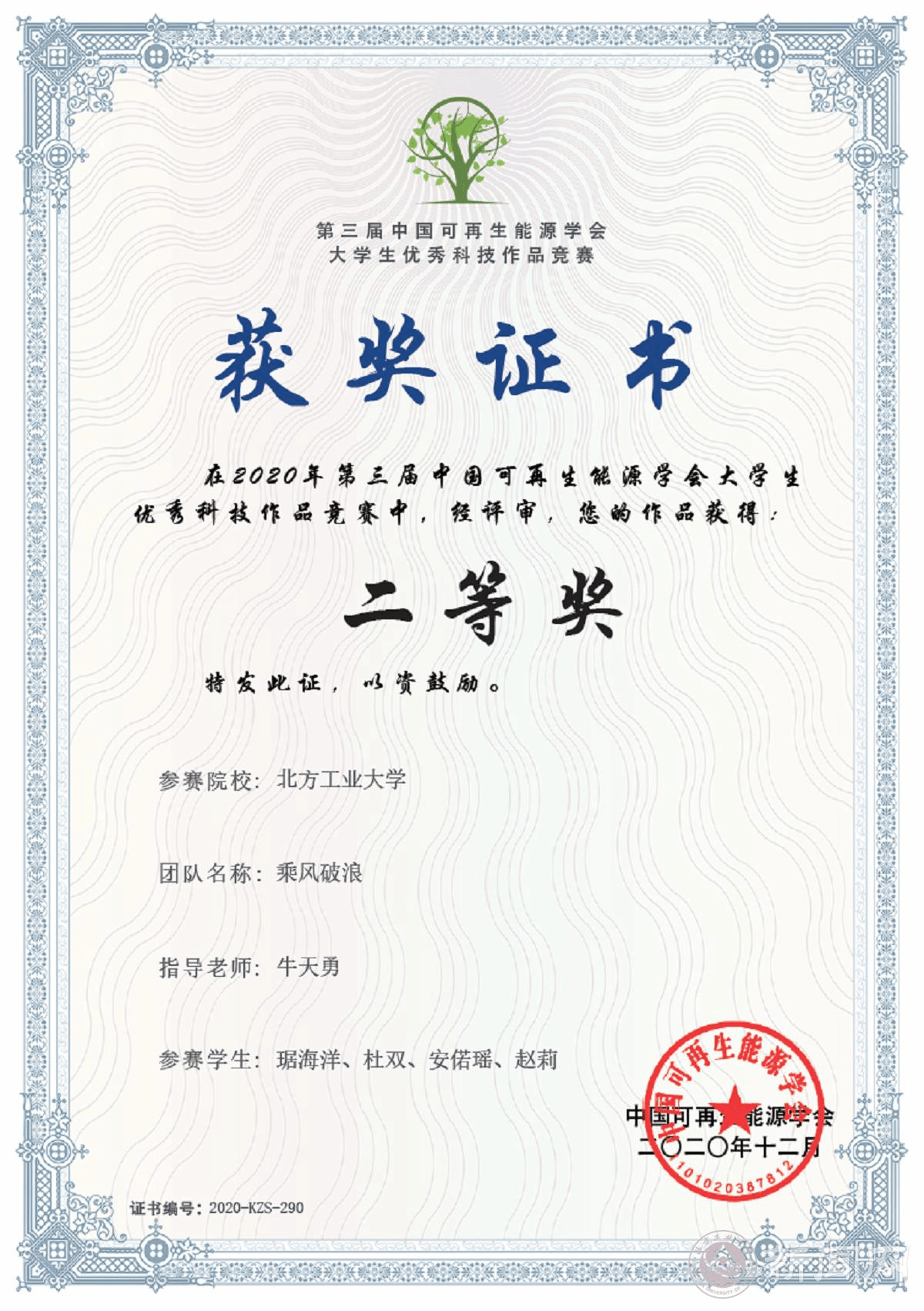 近日,由中国可再生能源学会主办的第三届中国可再生能源学会大学生优秀作品竞赛决赛成功举办。来自华北电力大学、哈尔滨工业大学、中国农业大学、天津大学等120多所高校参与此次竞赛。bat365在比赛中获得研究生组第二名的成绩,荣获二等奖。
