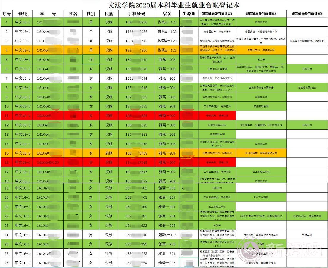 毕业生“一人一策”就业指导台账