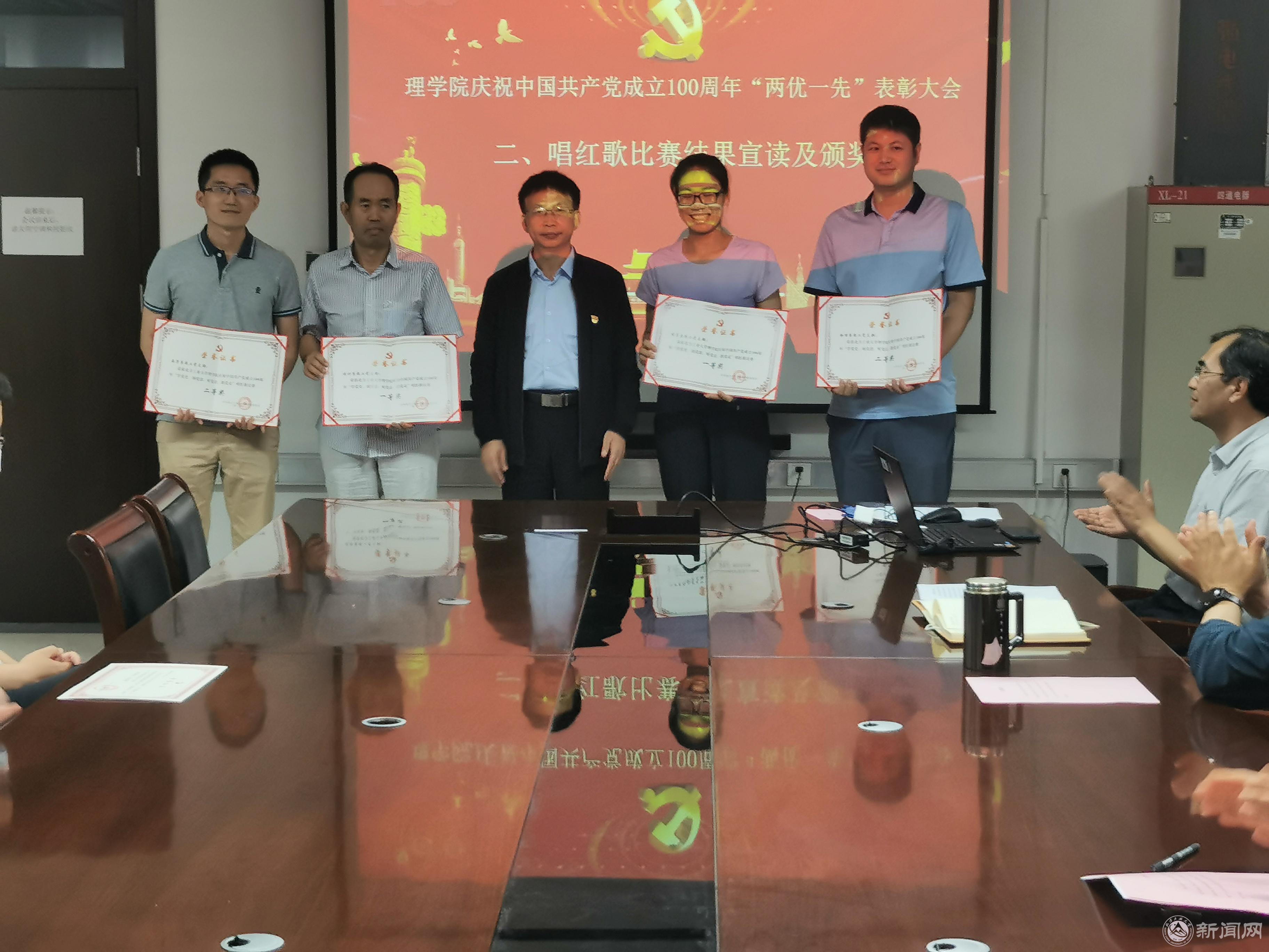 理学院党委书记龚维华宣读了理学院“两优一先”表彰决定,院长张建国为理学院先进党支部、理学院优秀共产党员、理学院优秀党务工作者代表颁发了获奖证书。