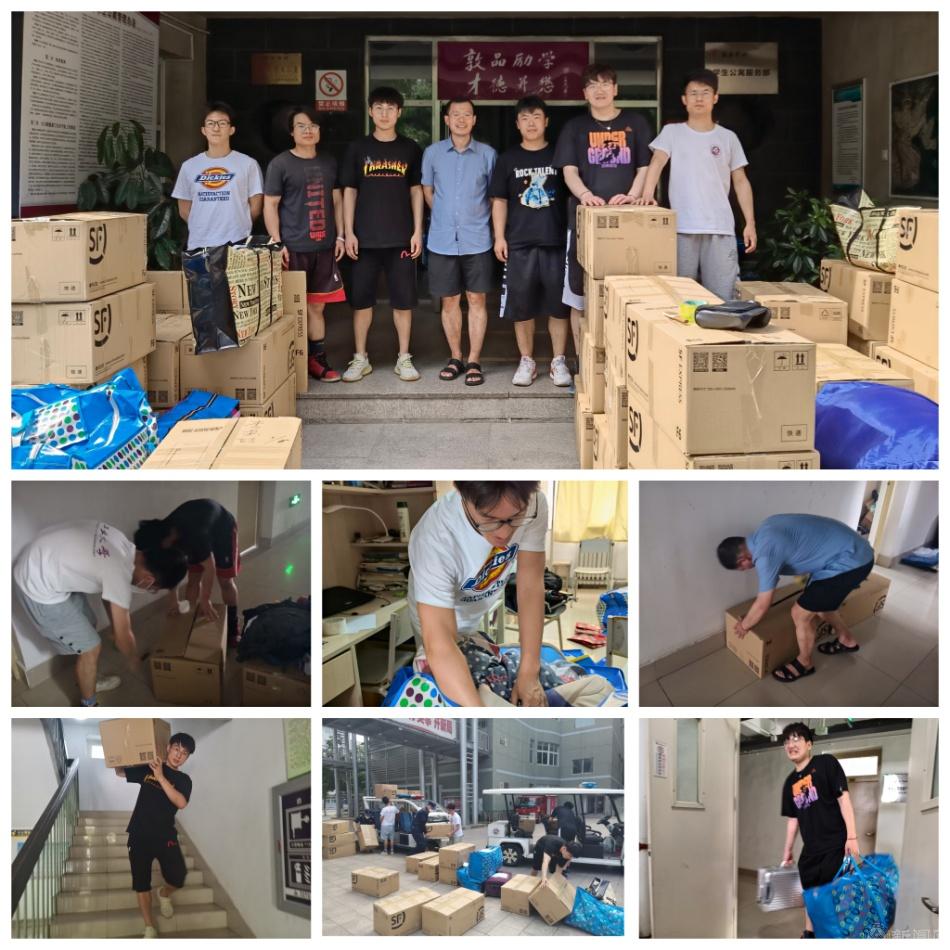 一事一议,精准帮扶,自实验18班学生共29人,其中28名学生为外地生源。因此自己暂时无法回京返校、无本班京内同学帮忙收拾行李成了同学们最大的担忧。学院学工办及自实验18班班导师雷振伍得知这个情况后,联系在校志愿者共同化身“打包员”“邮递员”,在只有步行梯的德斋,往返于快递站点和4楼之间,共寄送五十余件包裹,为2022年毕业季交上一份满意的答卷。