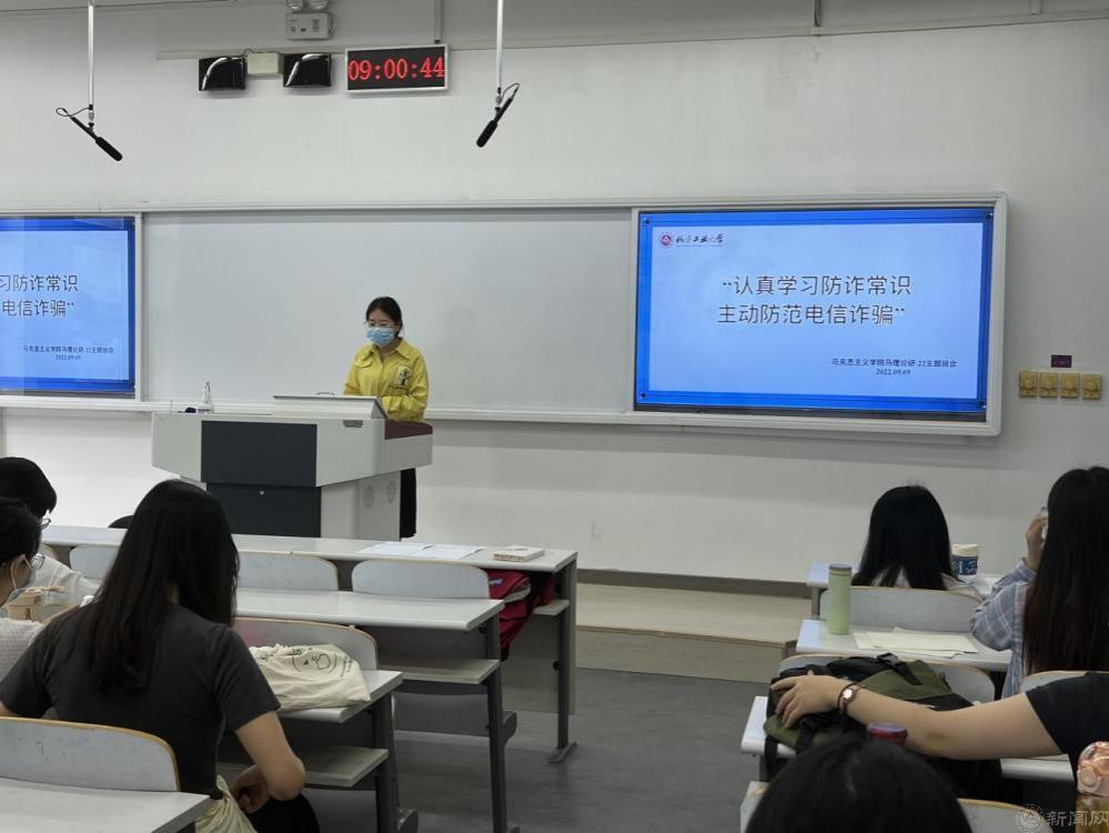 牢记安全,警钟长鸣。9月9日,为提升22级新生安全意识,特召开“防诈”主题班会。会上,全体同学共同观看了学校防范诈骗短片,了解了目前犯罪分子惯用的诈骗套路,在安装“全民反诈”APP后,手抄了杜绝电信诈骗的11条具体措施。大家表示,在今后的学习生活中,要擦亮双眼,共同防范电信诈骗,不给犯罪分子可乘之机。
