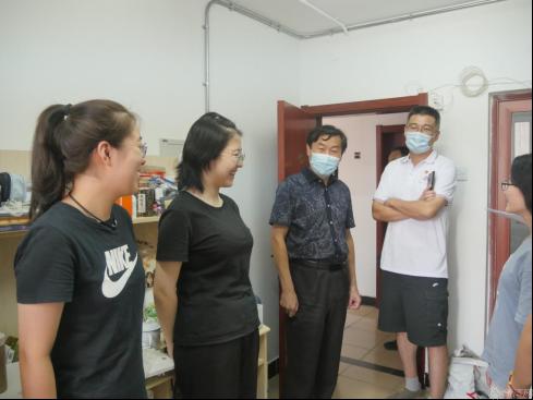 温馨关切,暖心走访。为深入了解我院2022级新同学的基本情况,帮助他们更好地适应研究生生活,8月26日下午,院长袁本文、党委书记张茂林等教师来到金鼎园大学生公寓,走访慰问2022级新同学。老师们与各位同学进行了亲切交谈,询问来校后的生活适应情况,嘱咐大家要提高宿舍安全意识、严格遵守公寓管理规定,要处理好人际关系、积极与学院保持沟通,要尽快适应新的环境,收获丰富多彩的研究生生活。