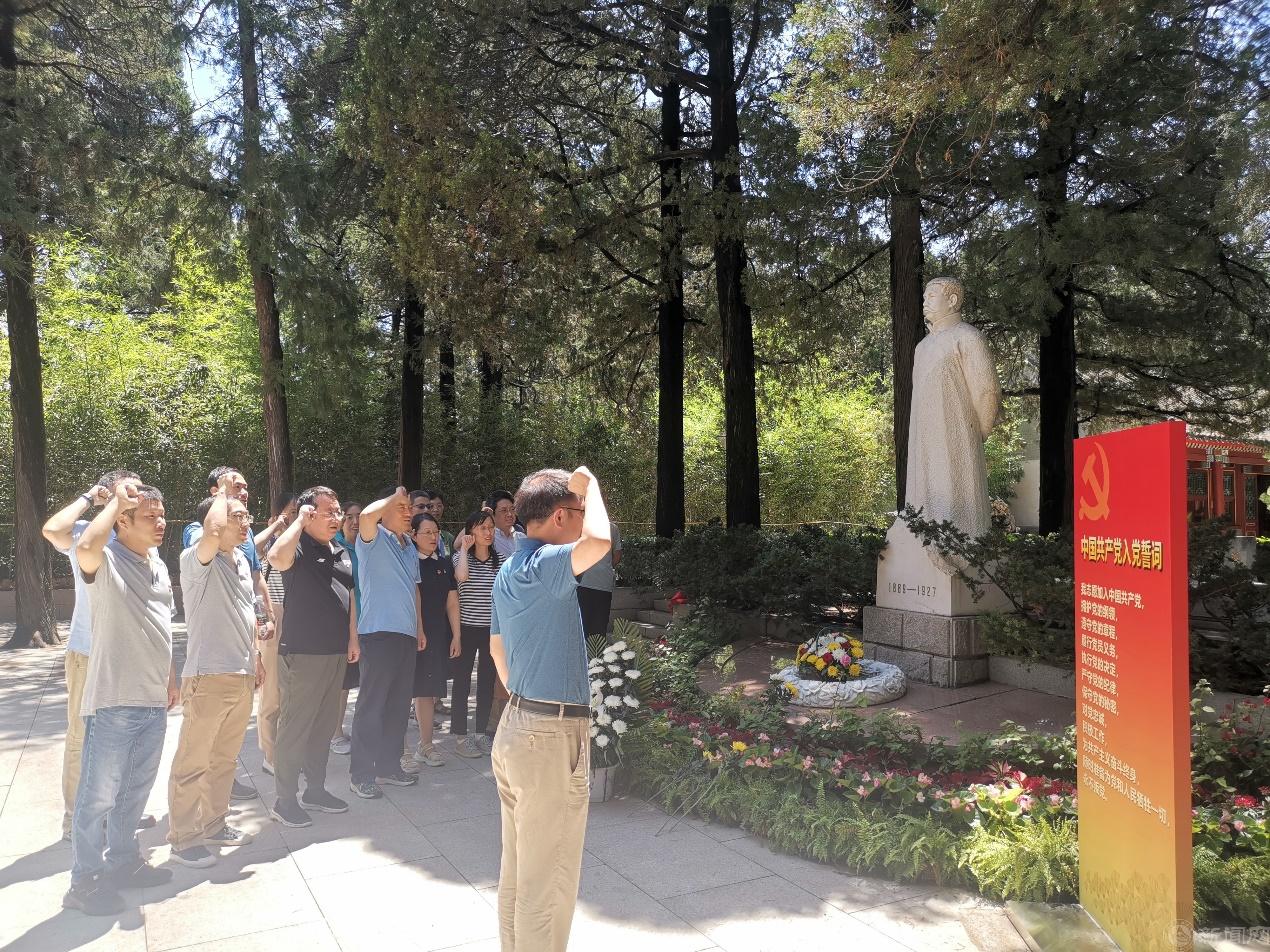 全体党员面向李大钊烈士墓碑,在信息学院副院长鲁远耀教授领誓下,重温入党誓词。在鲜红的党旗下,为共产主义事业奋斗终身的铮铮誓言,既是对革命先烈崇高的敬意与无限缅怀,又是吾辈誓以先烈为楷模,激励自己做好本职工作,为民族复兴伟大事业添砖加瓦的承诺。