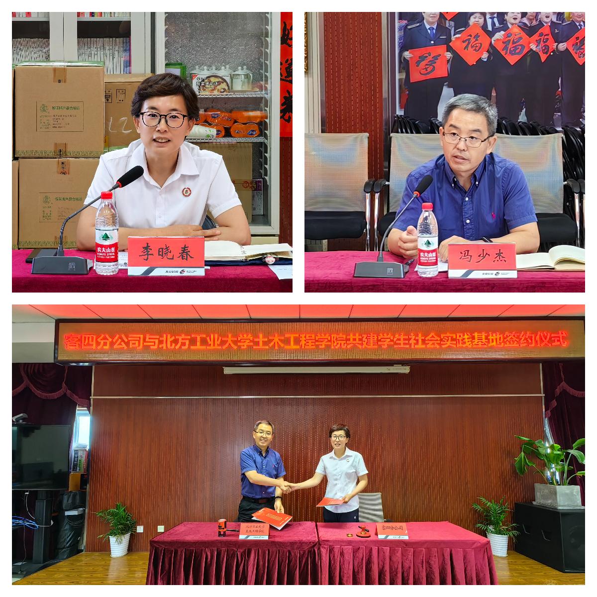 为持续推进学习贯彻习近平新时代中国特色社会主义思想主题教育走深走实,通过校企合作共建优质社会实践基地,为培养和提升学生实践创新能力提供平台支撑,8月31日,土木工程学院师生一行赴北京公共交通控股(集团)有限公司第四客运分公司(以下简称客四分公司)签署社会实践基地建设协议。客四分公司党委副书记李晓春、团委书记王紫雯,土木工程学院党委副书记冯少杰、团委书记金磊及学院部分学生参加了签约活动。活动由客四分公司团委书记王紫雯主持。