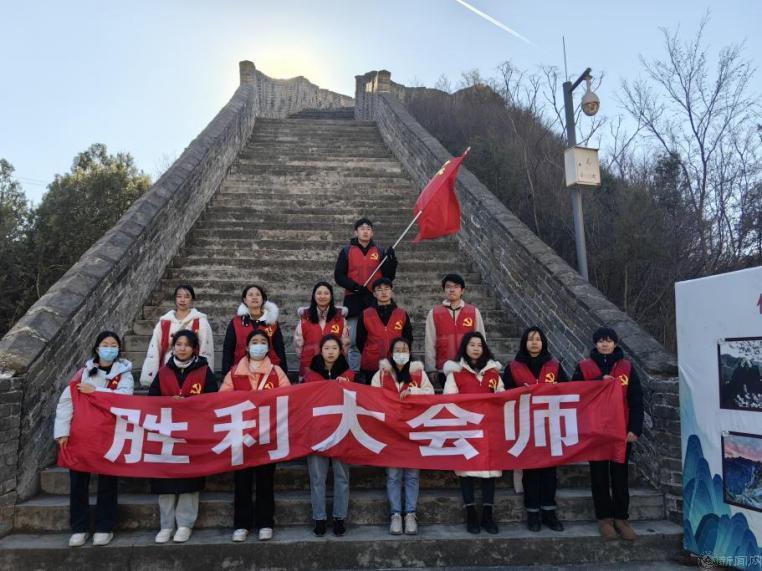 红馆参观结束后,大家列队齐走“挑粮小道”,重走一段长征路,感受山路崎岖、环境险峻的作战艰苦,和红军冲锋在前、奋勇杀敌的英勇与无畏。重温会师胜利,全体党员共唱《没有共产党就没有新中国》、朗诵《七律长征》,阵阵回声在长城上空响起,党员们抒发着爱党爱国的热情。