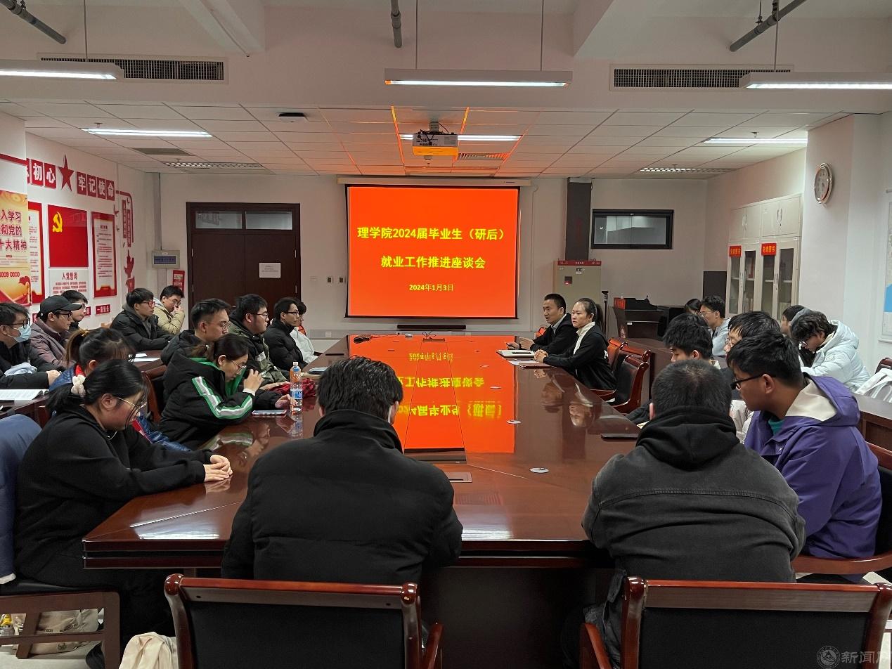 为进一步做好学院毕业生就业工作,增进学生对就业重要性的认识,引导学生树立正确的择业观和就业观。1月3日,理学院在博远楼805召开2024届毕业生(研后)就业推进座谈会。学院党委副书记贺映勇、本科毕业生辅导员夏丹梅以及2024届毕业班学生代表共计40余人参加座谈。