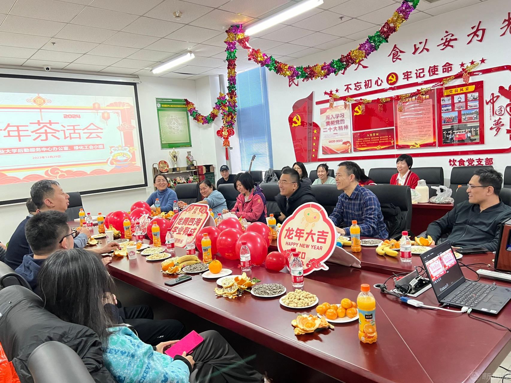岁序更替,华章又新,新的一年,如约而至。12月28日,服务中心以工会小组为单位举办了2024年迎新茶话会。后勤党委书记郑泰平、服务中心总经理张加强等部门领导分别深入各茶话会现场,与服务中心教职工欢聚一堂,共话发展,并为教职工送去了新年祝福。