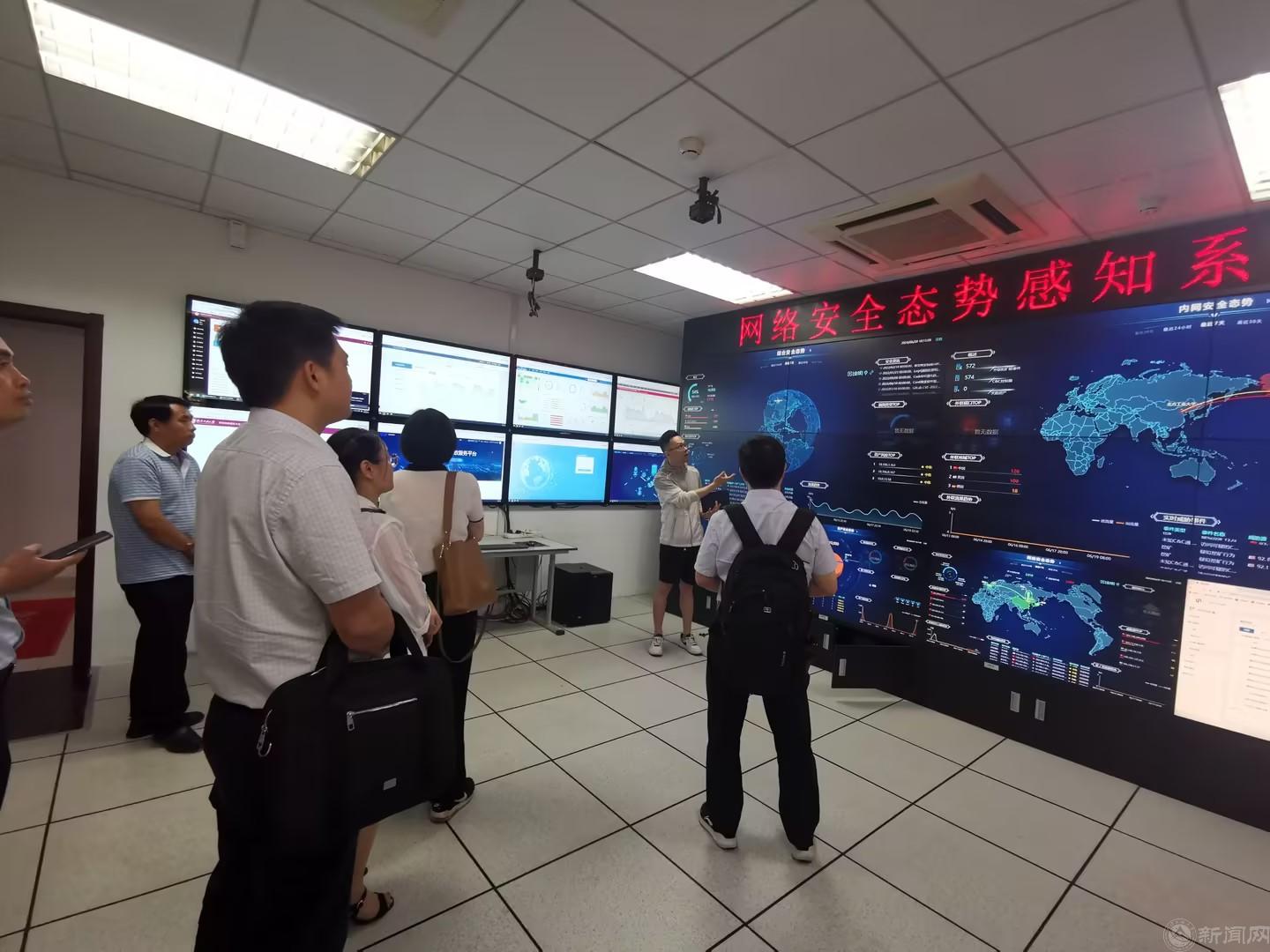 调研团队还参观了学校网络安全态势监控中心、教学运行管控中心、智慧教室等,并就信息安全、信息化建设、数据中台、智慧教学等方面进行了深入的技术探讨。