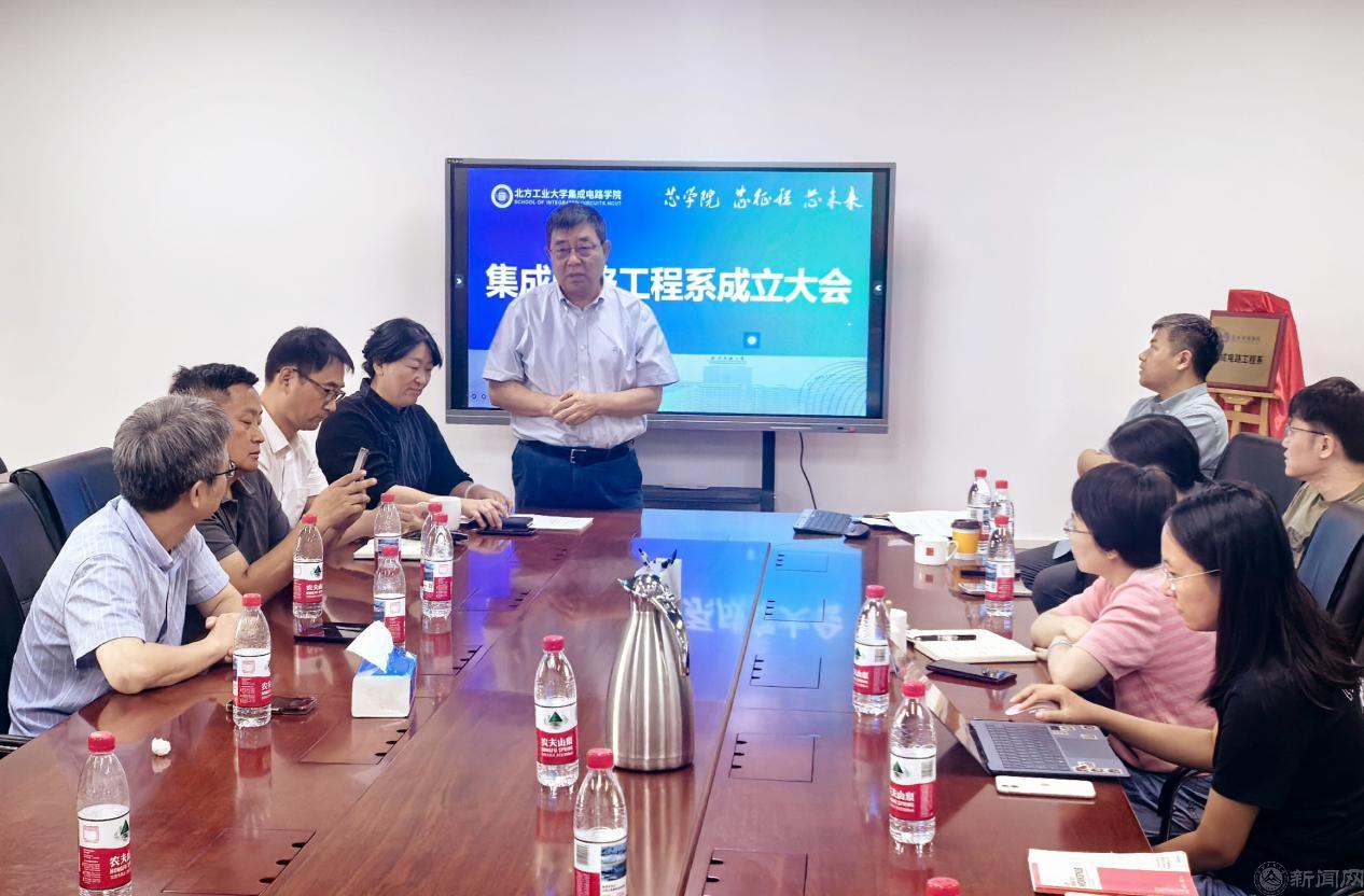 学院党总支副书记陈卫宣读了学院关于成立集成电路工程系的决定,并宣布聘任吴斌教授担任首任系主任。随后,吴斌教授围绕教学与科研两大方向,对集成电路工程系的未来发展提出设想与规划。他表示,新系将充分整合校内多学科优势资源,聚焦先进芯片设计、EDA工具及集成系统等核心领域,着力构建产教融合、协同育人的新型人才培养模式。