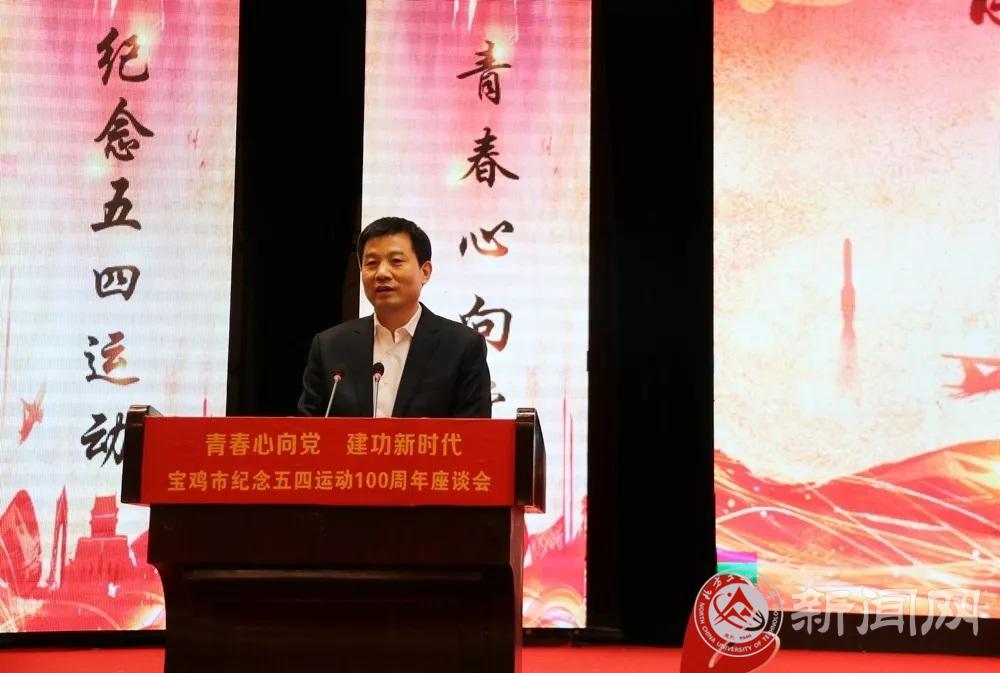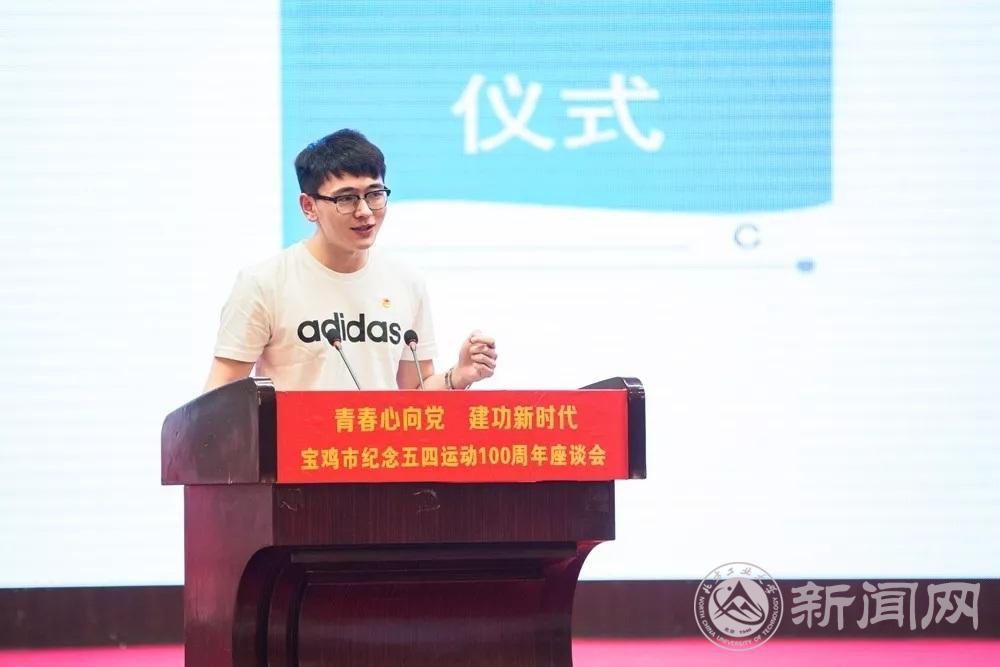 4月30号,宝鸡市举行“青春心向党 建功新时代”纪念五四运动一百周年座谈会。陕西省副省长、宝鸡市委书记徐启方出席并发表讲话。bat365文法学院中文18-2班张震同学受邀回乡参加座谈会,并作为8名发言人中唯一青年学生代表上台发言。