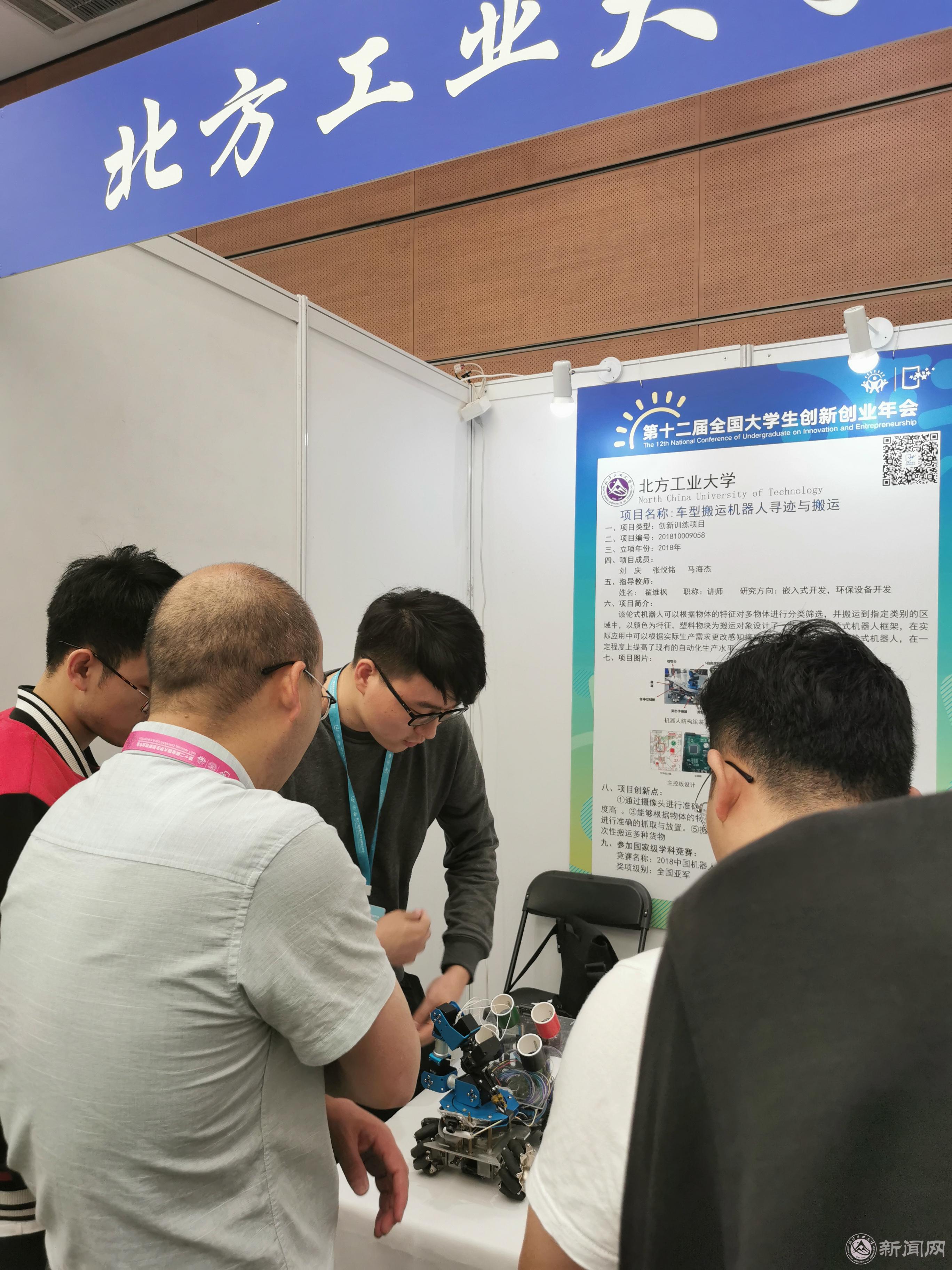 在北京市教委的选拔推荐下,bat365由机械与材料工程学院司丽娜老师指导,赵楠、陈国星等同学研究的“矢量二轴无人机结构设计与控制”、由电气与控制工程学院翟维枫老师指导,刘庆等同学研究的“车型搬运机器人寻迹与搬运”、由建筑与艺术学院李婧老师指导,谭辰雯等同学研究的“基于认知地图的传统村落保护方法研究”三个大创项目代表北京市市属高校参加了本届年会的创新作品展示与学术论文交流活动。在教务处老师的精心组织及三个项目组学生在展会期间的出色表现下,bat365被大会组委会授予“全国大学生创新创业训练计划优秀组织奖”的荣誉称号。