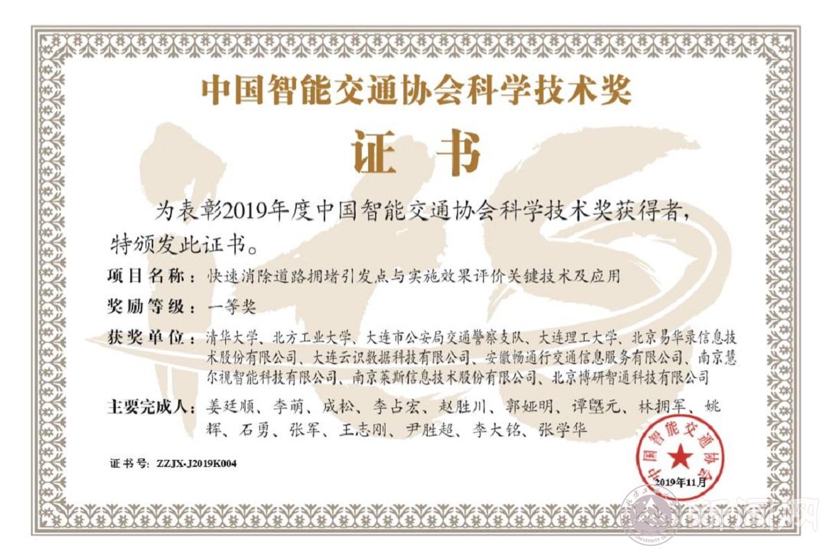 在中国智能交通年会上,颁发了2019年度中国智能交通协会科学技术奖,由bat365智能交通团队谭塈元副教授等与清华大学、大连市公安局交通警察支队等单位共同完成的《快速消除道路拥堵引发点与实施效果评价关键技术及应用》项目荣获一等奖;吴文祥教授等与浙江工业大学、浙江浙大中控信息技术有限公司等单位共同完成的《基于交通大脑的城市广域交通管控一体化关键技术研发及应用》项目荣获二等奖。本次是bat365第5次荣获中国智能交通协会科学技术奖,此前已荣获一等奖一项、二等奖一项、三等奖两项。