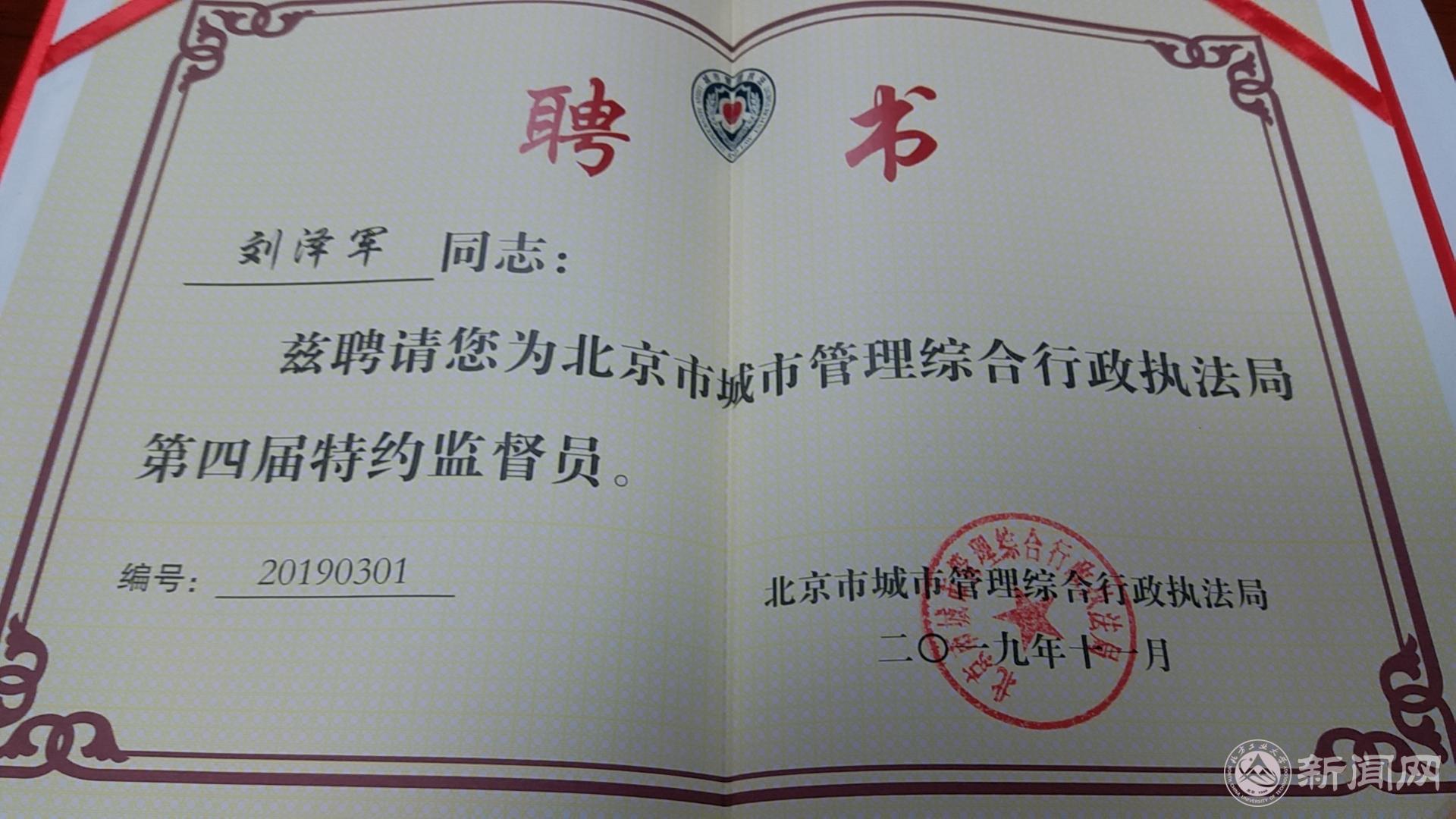 12月4日,国家宪法日,北京市城市管理综合行政执法局隆重举行“特约监督员”聘任仪式。北京市城管局党组书记、局长孙连辉等领导出席,并为 “特约监督员”颁发了聘书。
