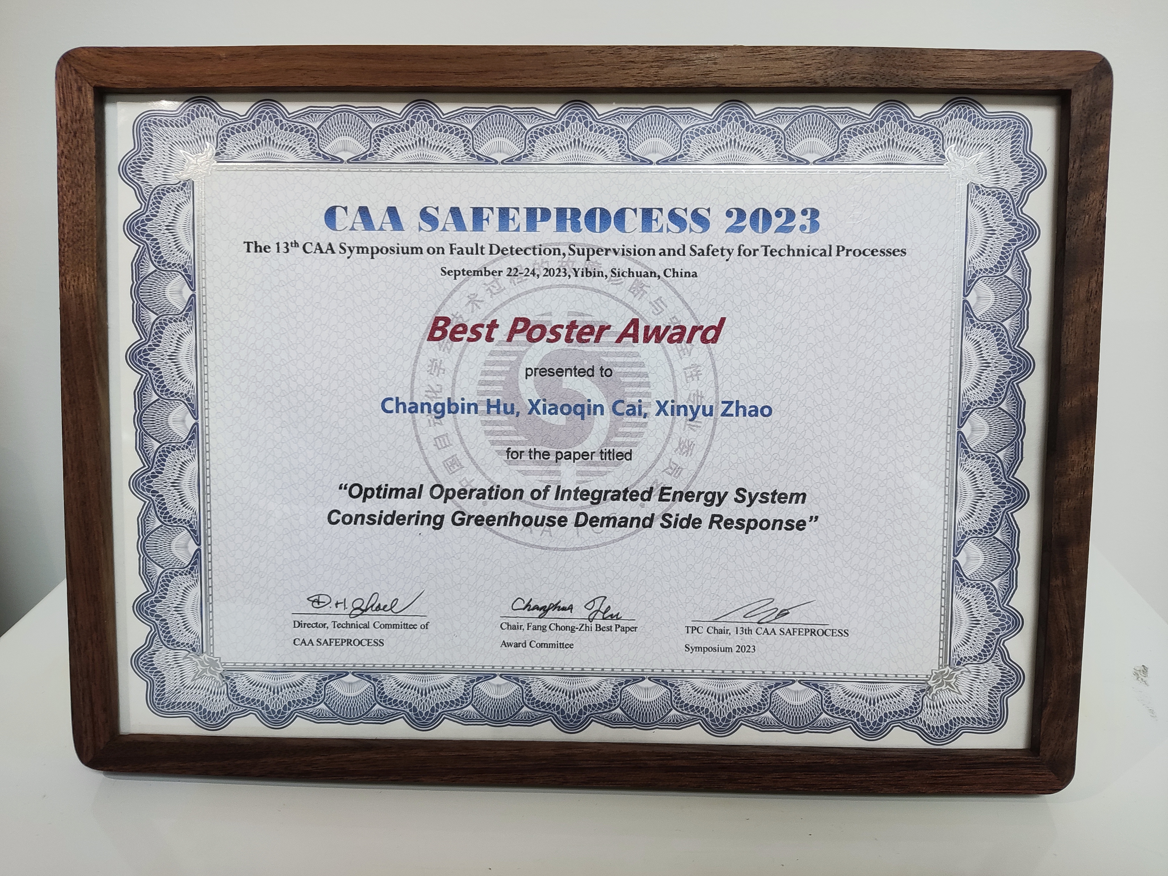 9月23日,第十三届全国技术过程故障诊断与安全性学术会议在四川宜宾国际会议中心举行,bat365电气与控制工程学院胡长斌教授发表的论文OptimalOperationofIntegratedEnergySystemConsideringGreenhouseDemandSideResponse获得会议最佳论文奖。会议共收到122个机构的276篇投稿,经过严格评审,只有2篇文章获此殊荣。本次会议由中国自动化学会技术过程的故障诊断与安全性专业委员会主办,四川大学、四川轻化工大学和人工智能四川省重...