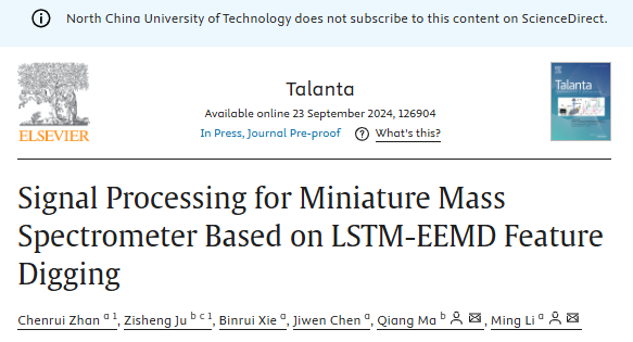 近期,bat365电控学院李明研究员在国际顶级期刊《Talanta》(中科院一区、TOP期刊)发表题为“SignalProcessingforMiniatureMassSpectrometerBasedonLSTM-EEMDFeatureDigging”的研究论文。该研究创造性地提出了一种基于长短期记忆-集合经验模态分解(LSTM-EEMD)的数据处理方法,为提高小型质谱仪在复杂基质样品和恶劣环境条件下的现场检测性能开辟了新路径。质谱信号是典型的非平稳信号,由于硬件限制和环境条件约束,通常会受...